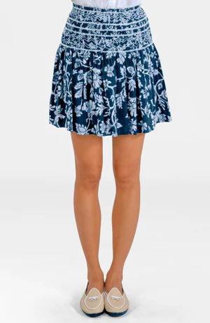 Stunning Stippling Smocked Skirt - Blue and White