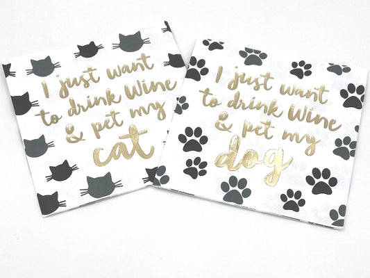 Drink Wine and Pet My Cat Cocktail Napkins