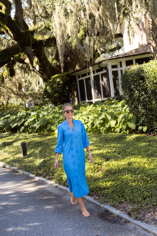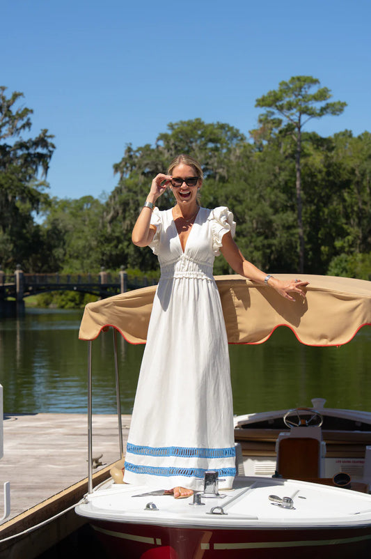 MIALEIGH ELBOW SLEEVE LIN-CAPRI BLUE X RESORT WHITE--2