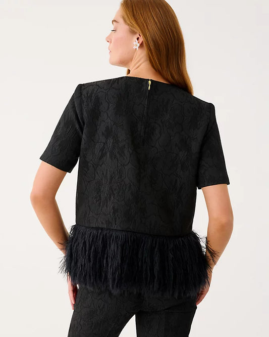 RYLAN V-NECK TOP - NOIR - EXPLODED FLOWER STRETCH JACQUARD