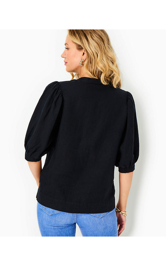 MIALEIGH LINEN TOP - NOIR X NOIR