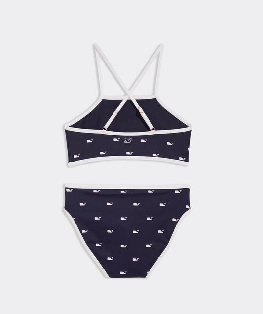 Girls' High Neck Tipped Bikini - Whale Naut Navy