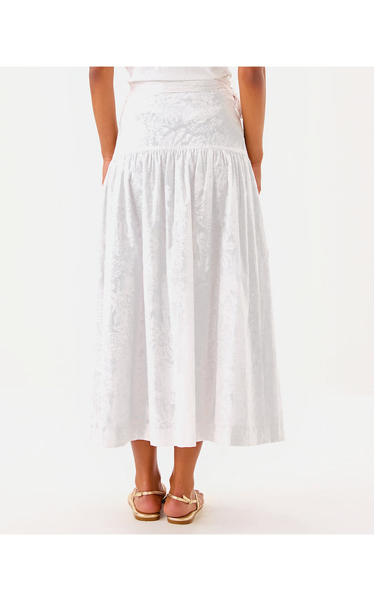 CORINA MIDI SKIRT - RESORT WHITE - CATCHIN RAYS OVERPRINT