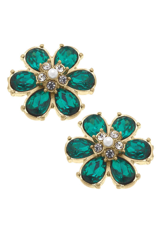 BROOKE RHINESTONE & PEARL FLOWER STUD EARRING