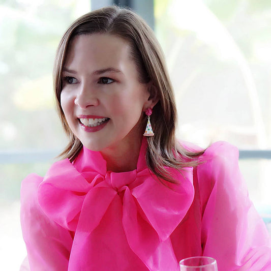 Canvas Style - Polka Dotted Party Hat Enamel Earrings in Rainbow Multi