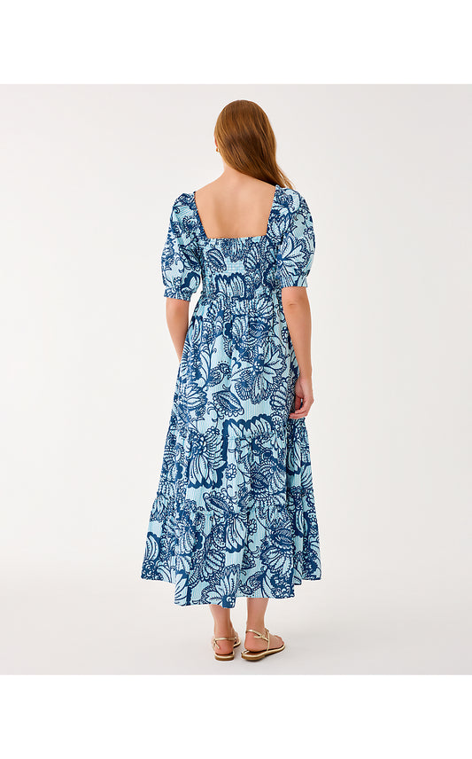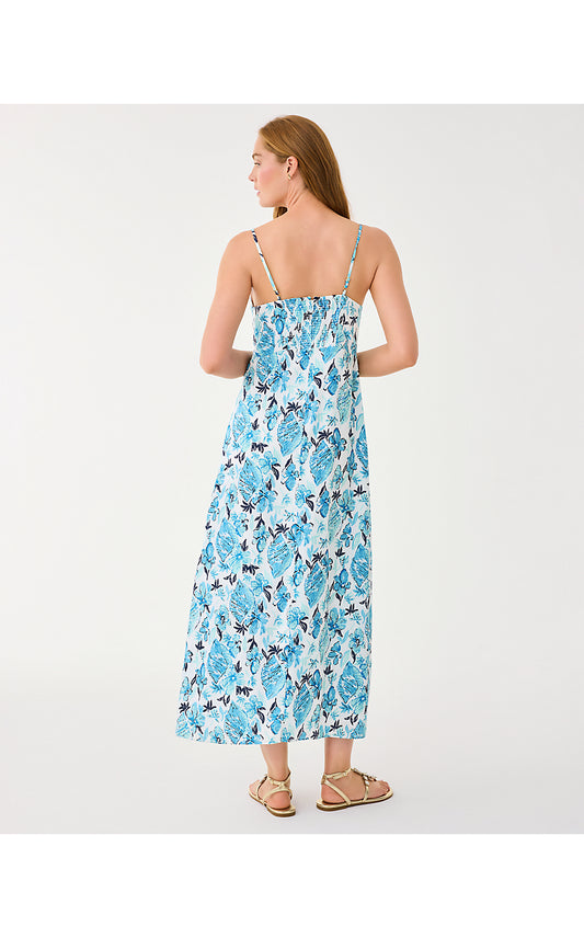 AMALFI SILK MAXI DRESS - SALT POND BLUE - SUNNY DEE ENGINEERED WOVEN MAXI
