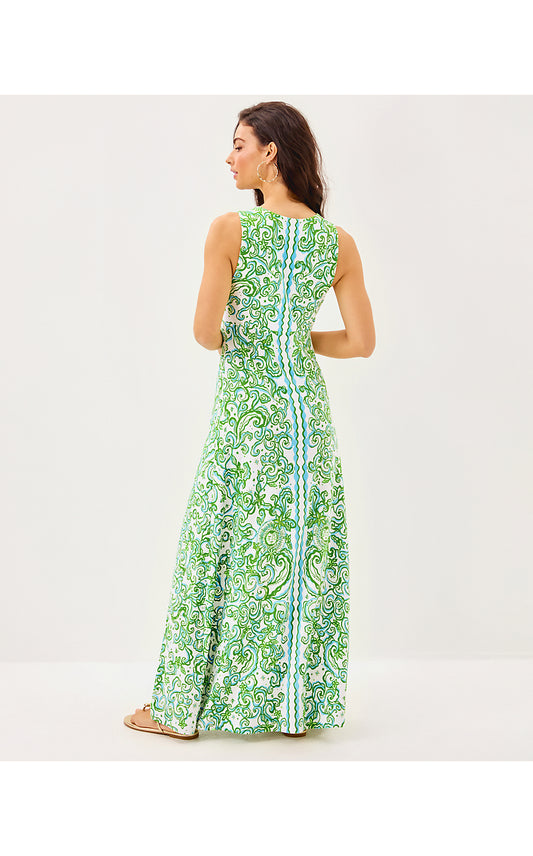 CARMILLA MAXI DRESS - SAPPHIRE POOL - TROPICAL TANGO ENGINEERED KNIT MAXI