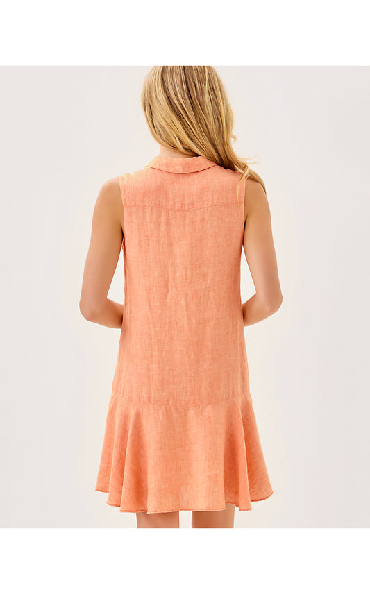 ELLOWYN LINEN DRESS - PAPAYA X RESORT WHITE