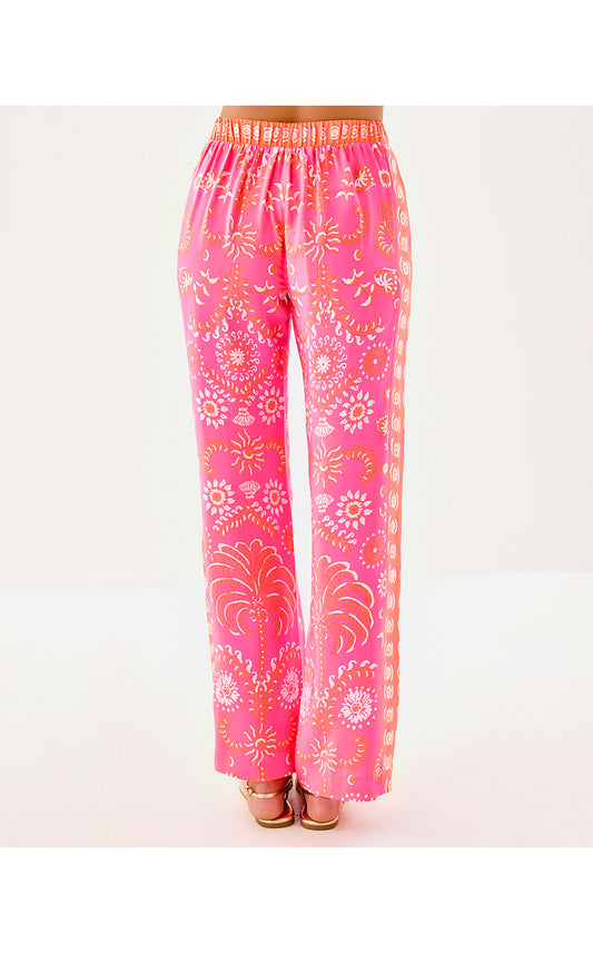 VIANNA SILK PALAZZO - SUNKISSED PINK - BREEZY PALM ENGINEERED PANT