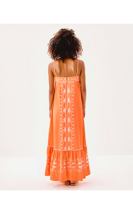 ROZALIE MAXI DRESS - PAPAYA - FROND FANTASY EMBROIDERY