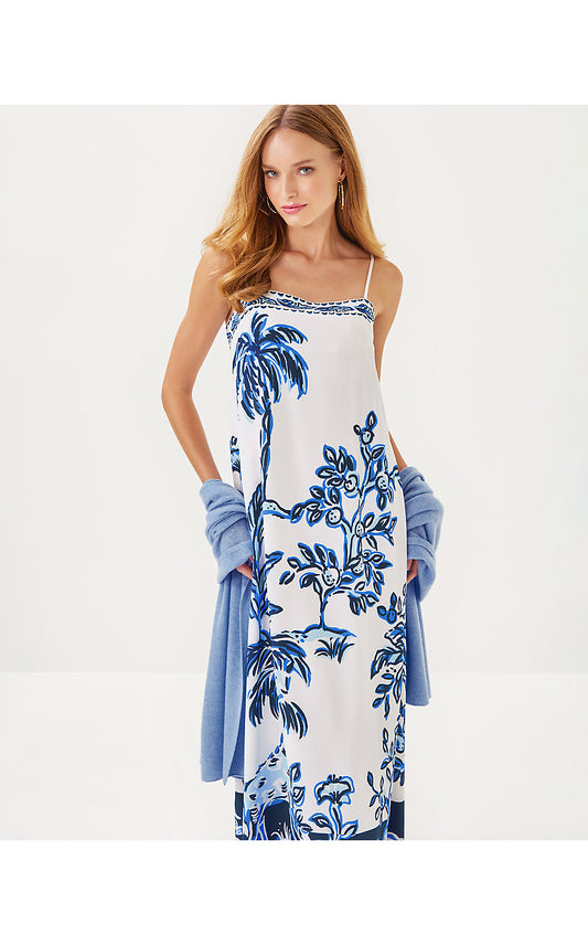 JESSLYN SILK MAXI SLIP DRESS - RESORT WHITE - OVERSIZED TALL TALES ENGINEERED WOVEN MAXI DRESS