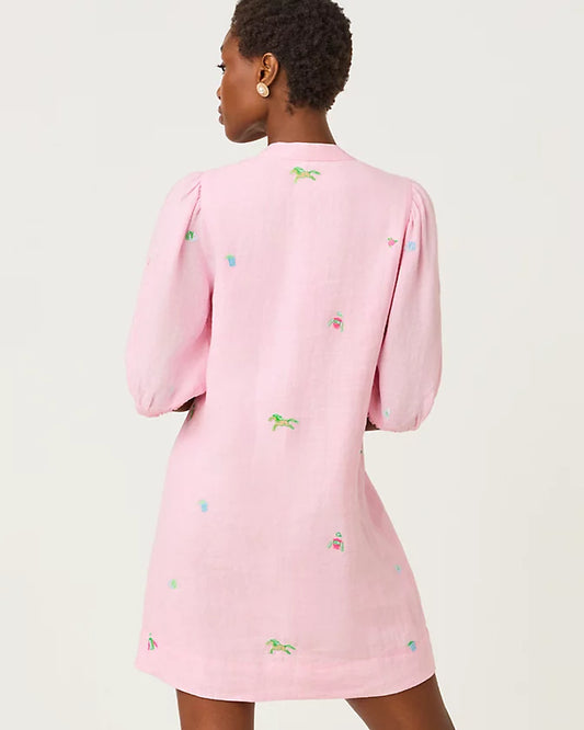 MIALEIGH ELBOW SLEEVE LIN - CONCH SHELL PINK - DERBY DITSY EMBROIDERY