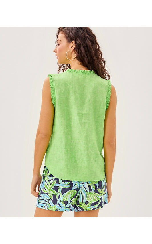 KAVALLA SLEEVELESS RUFFLE - CROCODILE GREEN X RESORT WHITE
