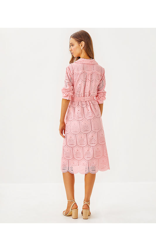 EIRA MIDI SHIRTDRESS - PINK MUSE - PINEAPPLE TILE EYELET