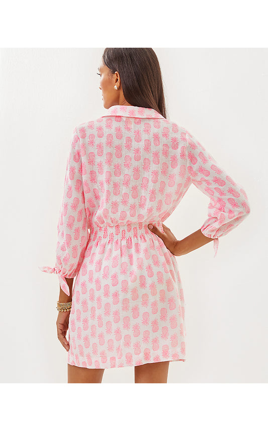 XYLIA DRESS - RESORT WHITE - PINEAPPLE TILE EYELET