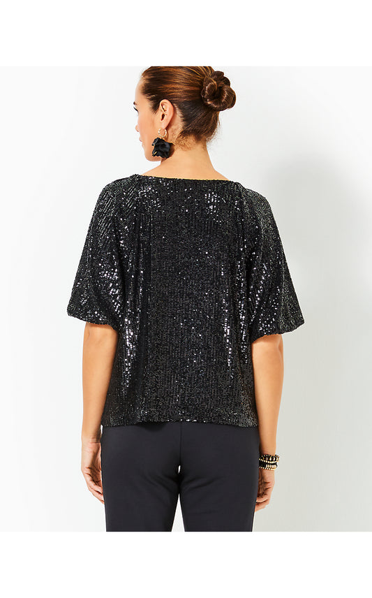 CRESSIDA KNIT TOP - NOIR - TREASURE BOX SEQUIN KNIT