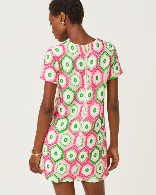Leyla Shift Dress Cherry Blossom Pink Daisy Hex Crochet