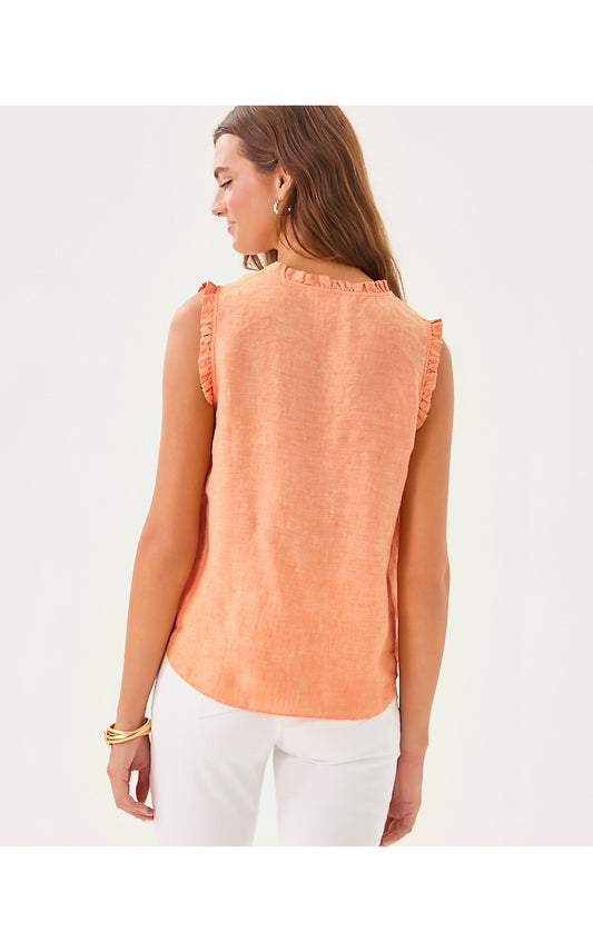 KAVALLA SLEEVELESS RUFFLE - PAPAYA X RESORT WHITE