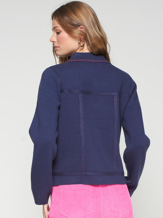 PUNTO CARDIGAN PESPUNTE VAQUERO NAVY PINK