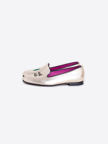 SHOE SLIPPER PIEL ORO EMB METALLIC GOLD