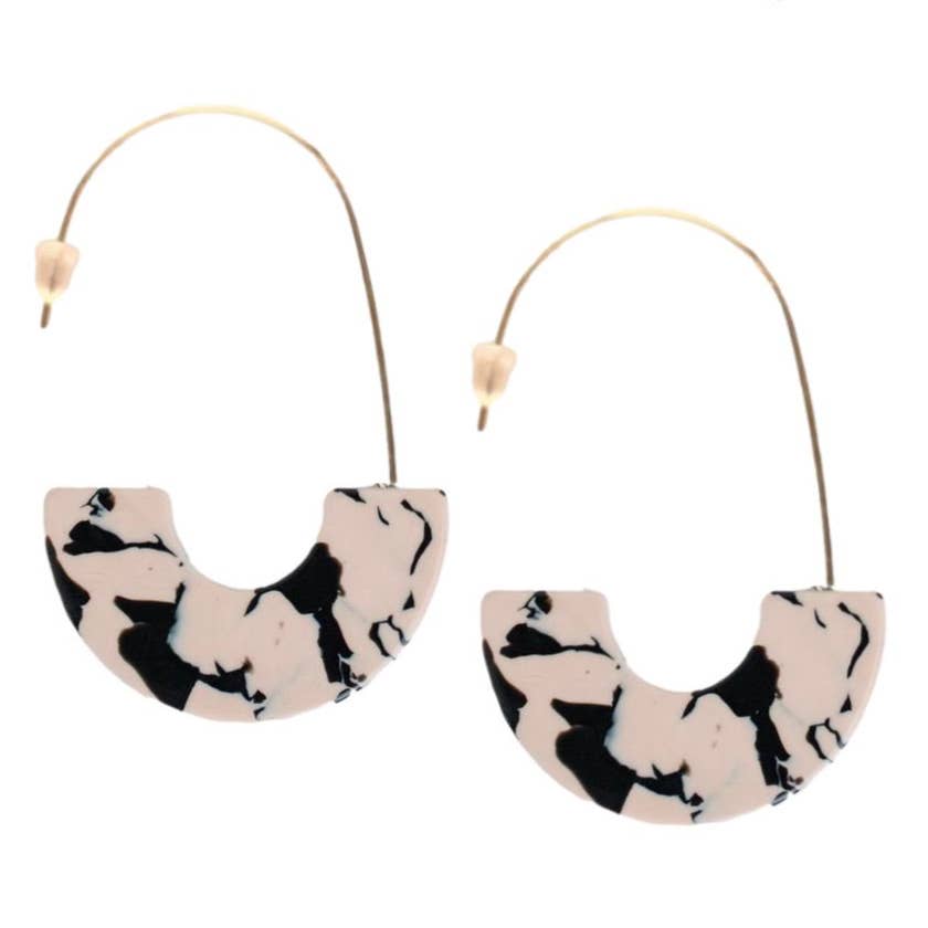 We are excited to introduce the black and marble version of our half moon! These are some of our all-time favorite designs! These earrings feature a half moon shaped resin marble mold affixed with an ultra long "thread through" post. Best of all, these hoops are some of the lightest earrings in our collection and can be worn comfortably all day! * 2.2 Inches Long * 1.5 Inches wide (Half Moon Bead - End to End) * "Slip On" Thread Style Hoop Earring with an Ultra Long Post and Spotty Marble Resin "Half Moon" Bead * Purchase Includes Removable Silicone Earring Back (Not Pictured) to keep earrings in place if desired * Classic, Black / White Marble can be worn with stripes as well as jewel tones, tartans and plaids * Can be dressed up or dressed down for brunch, work, showers, etc.
