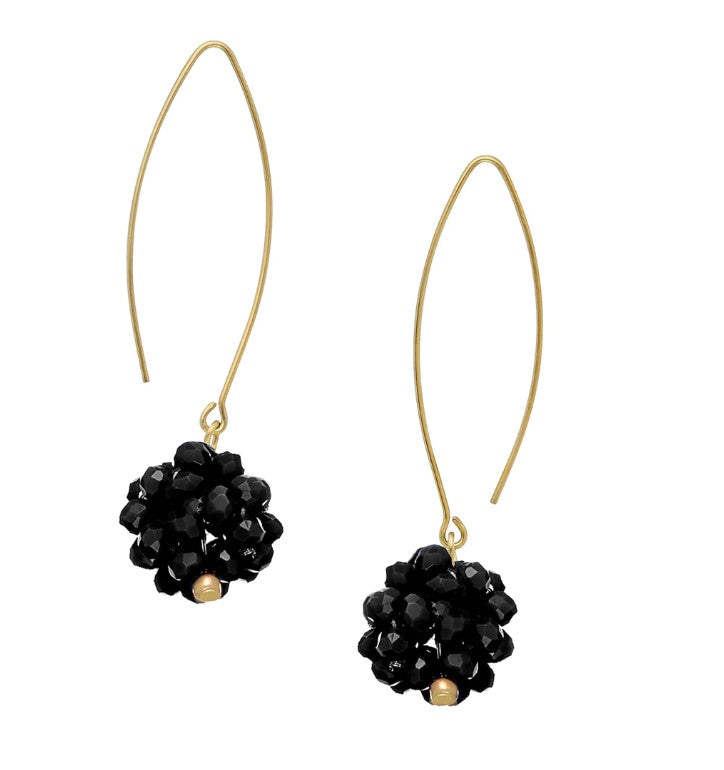 Triple plated 24K gold, beaded crystal clusters drop earrings