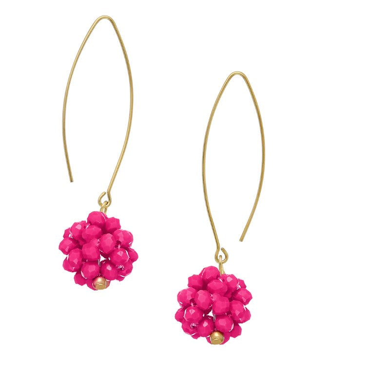 Triple plated 24K gold, beaded crystal clusters drop earrings