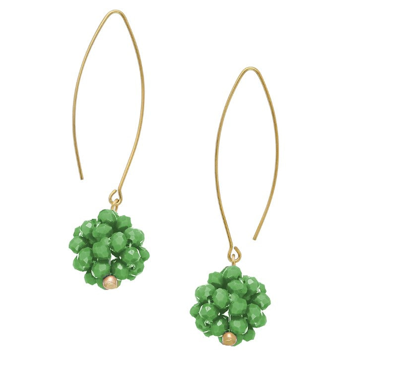 Triple plated 24K gold, beaded crystal clusters drop earrings