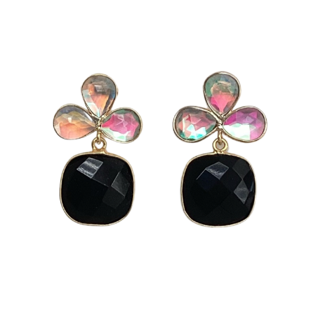Doublet Ear Post, Onyx Gemstone Drop set in Gold