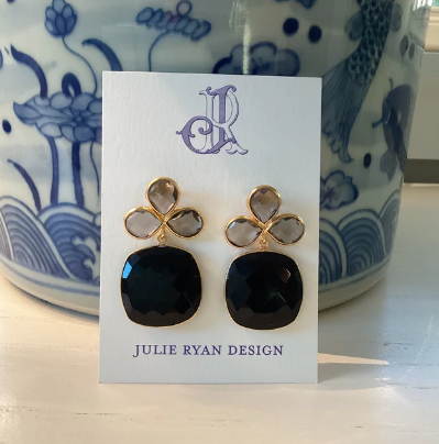 Smokey Quartz Ear Post, Black Onyx Gemstone Drop
