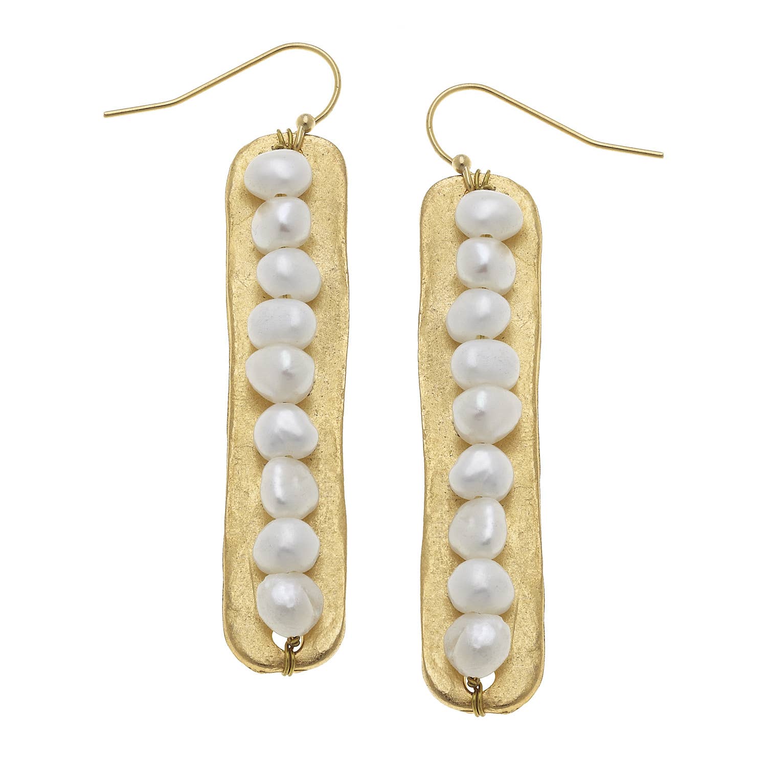 Dazzle and shine with these whimsical earrings! Crafted with genuine freshwater pearls set on a gold bar, these earrings are a perfect way to add a little sparkle and style to any outfit. Measuring .50" w x 2" h, you'll be sure to turn heads!