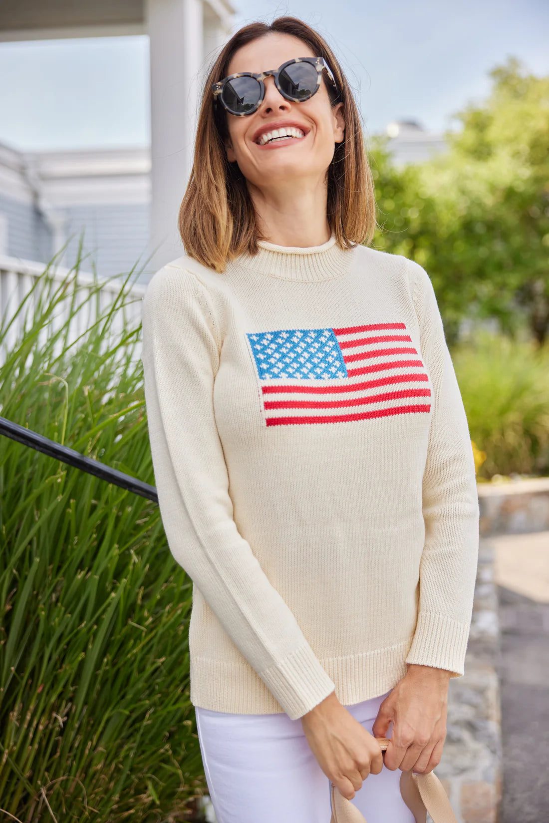 Classic Americana! We've added an elevated twist to this preppy wardrobe staple. Meet the roll neck Flag Sweater that's ready for seaside strolls, morning coffee dates, and running errands around town. Spun in a cotton blend, this layer is wonderfully soft and the perfect weight for breezy days and cool summer nights.