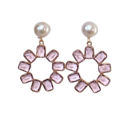 Freshwater Pearl Earpost, Pink Quartz Gemstone Drop earrings.