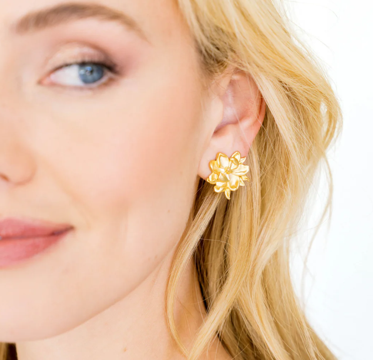 The Magnolia Studs are the perfect addition to your everyday jewelry set. Modern yet elegant, they pair well with any of your favorite gold pieces.