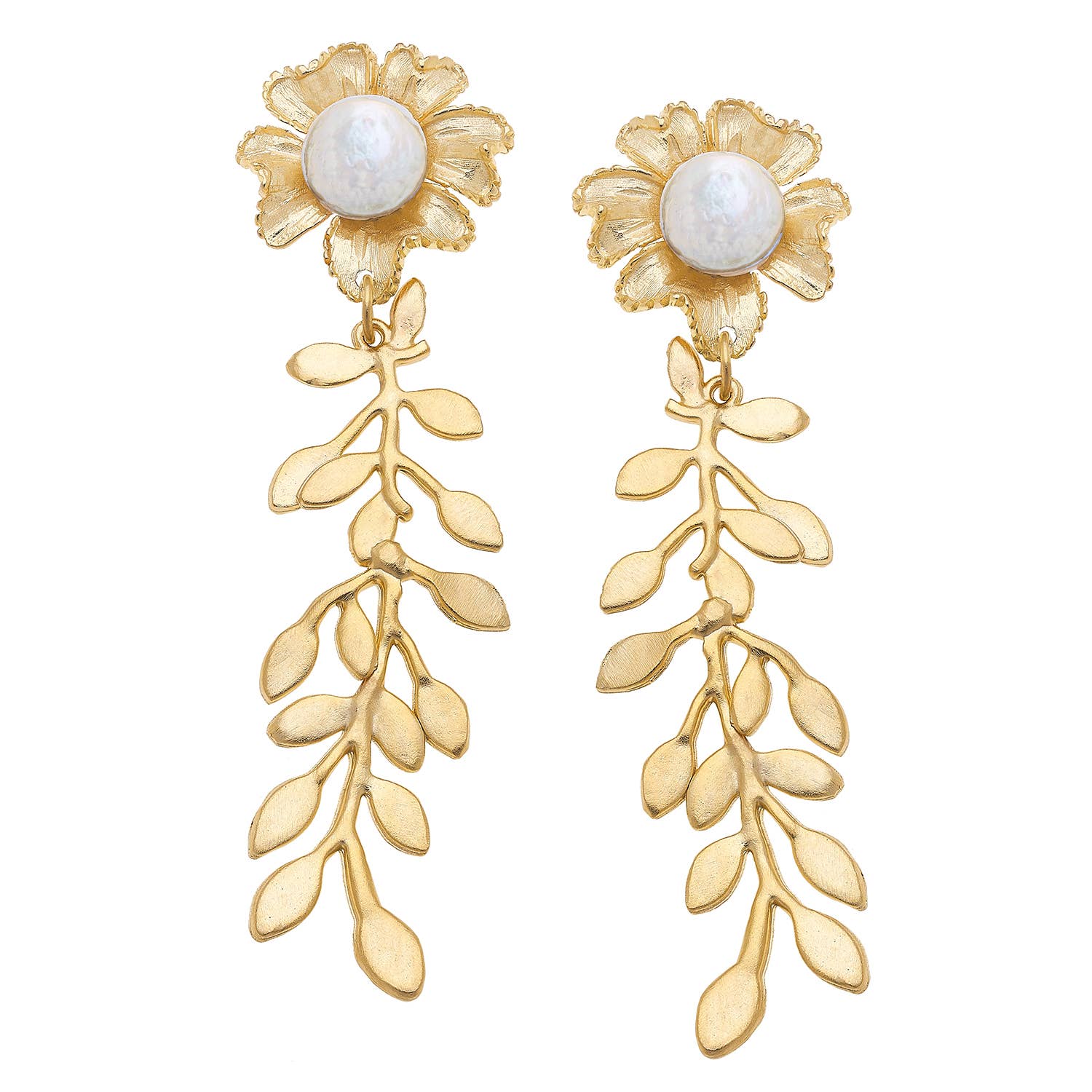 Handcast gold vine with genuine freshwater pearl earrings. Susan combined two best selling pieces to create these stunning statement earrings.