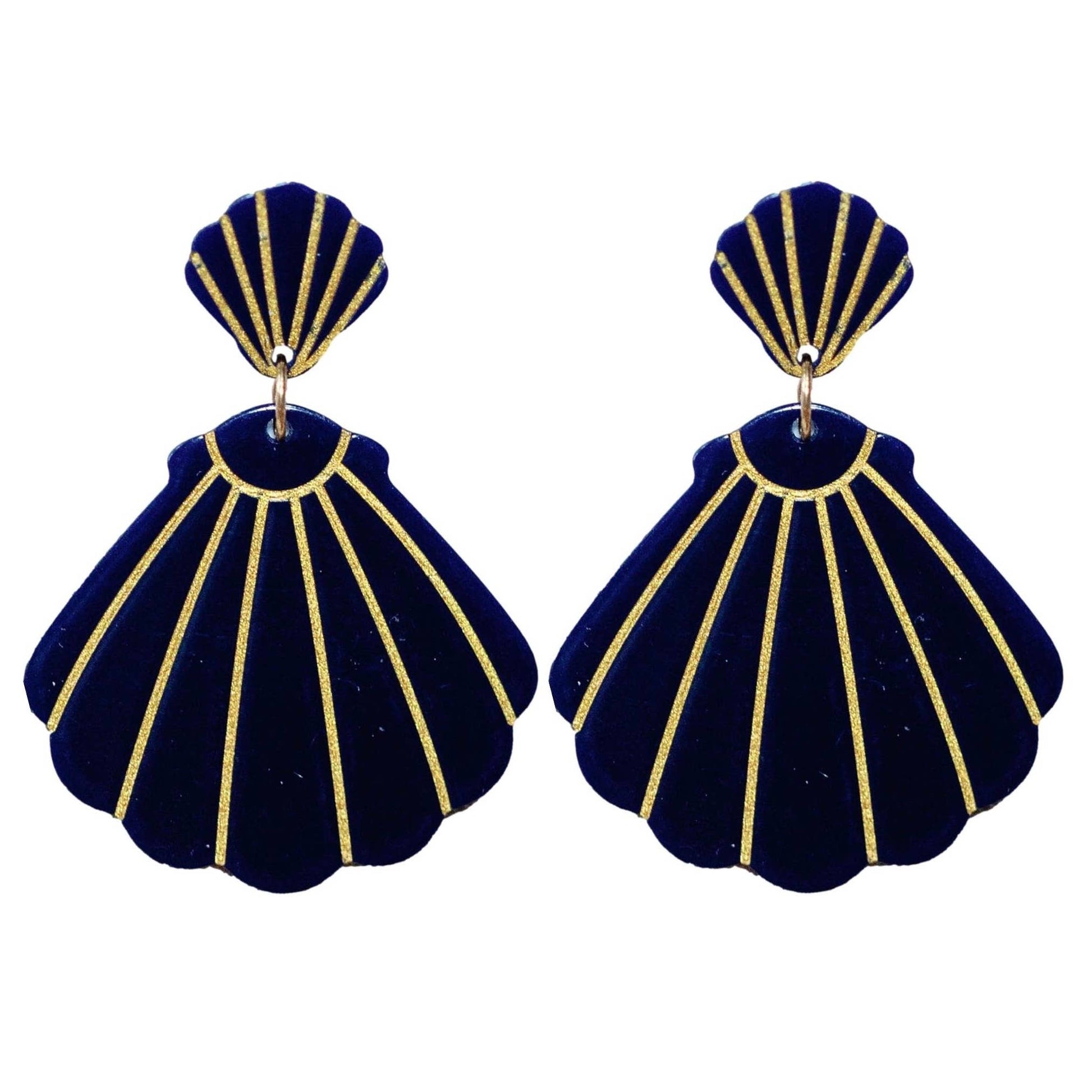 We are excited to introduce our navy shell design! These shell drops feature a navy blue color that is perfect for year round outfits! These shells are also super lightweight! - 2 inches long - 1.5 inches wide - post back