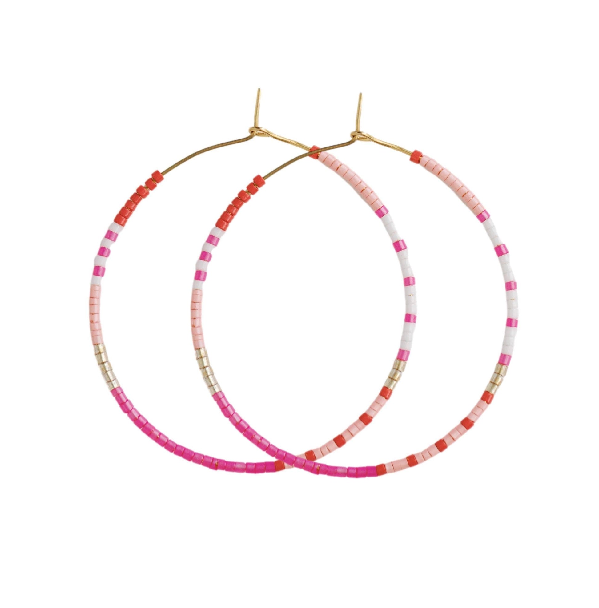 Our new skinny pink beaded hoops are the perfect spring and summer addition and will definitely brighten your display! They are easy and very lightweight!