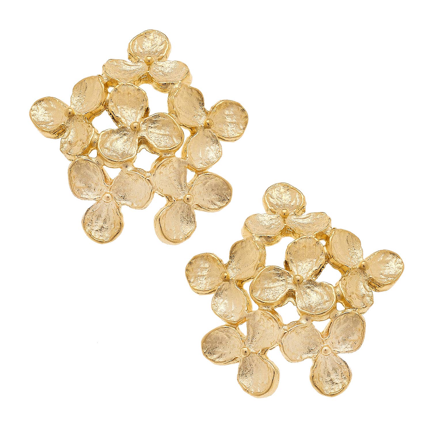 Handcast gold cluster earrings. 1.25" in length.A cluster of Forget-Me-Not buds make up these perfectly-summery studs.