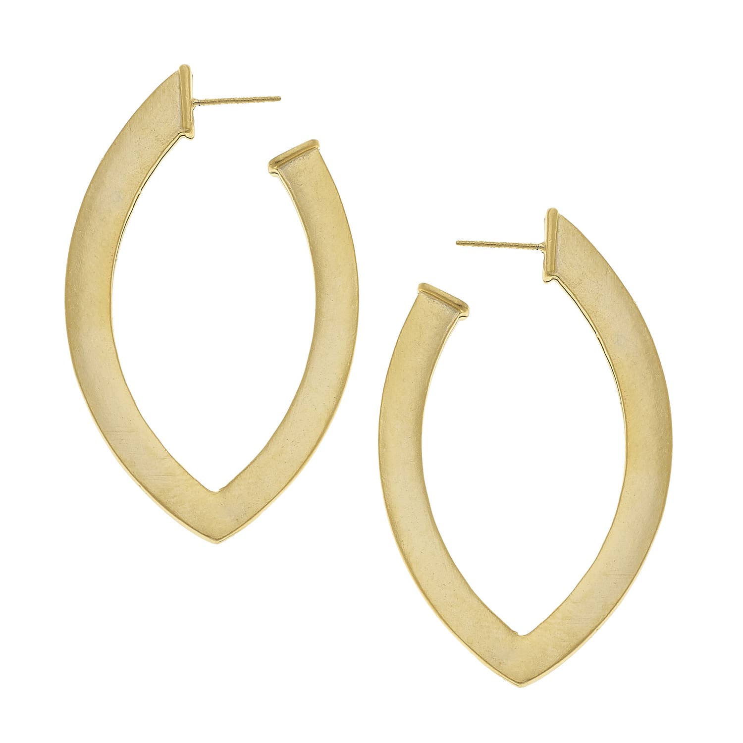 1.25" w x 2" l. These geometric pointed earrings are an abstract version of the classic gold hoop.