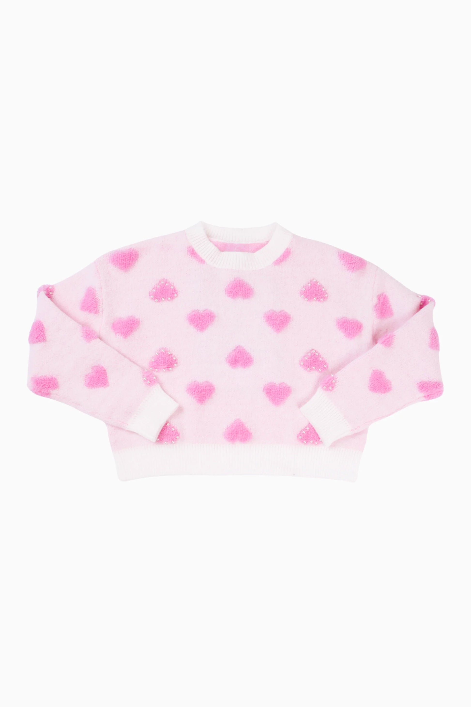 Add a darling touch to her fall wardrobe with this pink tween sweater, featuring a sweet heart design & delicate pearl accents. A cutesy yet polished piece made to bring charm & cozy vibes to cooler days. Pair it with our Alice Tween Skirt for an effortlessly adorable look!