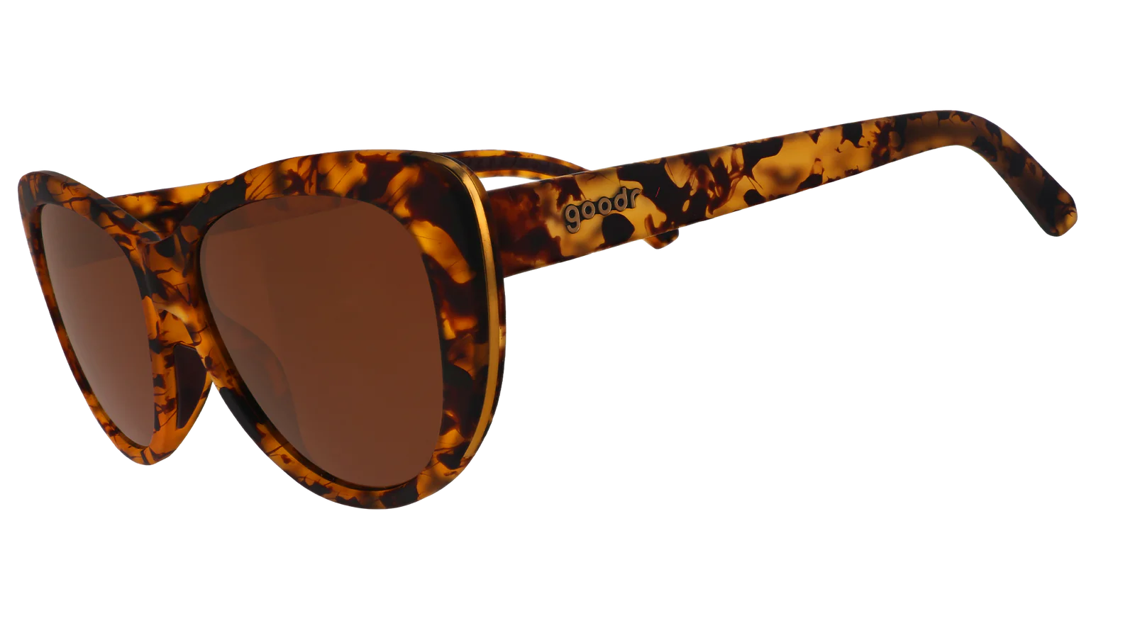 ME-OW!!! Take a walk on the wild side in these ferociously fashionable brown tortoiseshell sunglasses with brown non-reflective lenses and gold accents. WARNING: Wearing may result in an uptick of runway catfights due to extreme style envy.